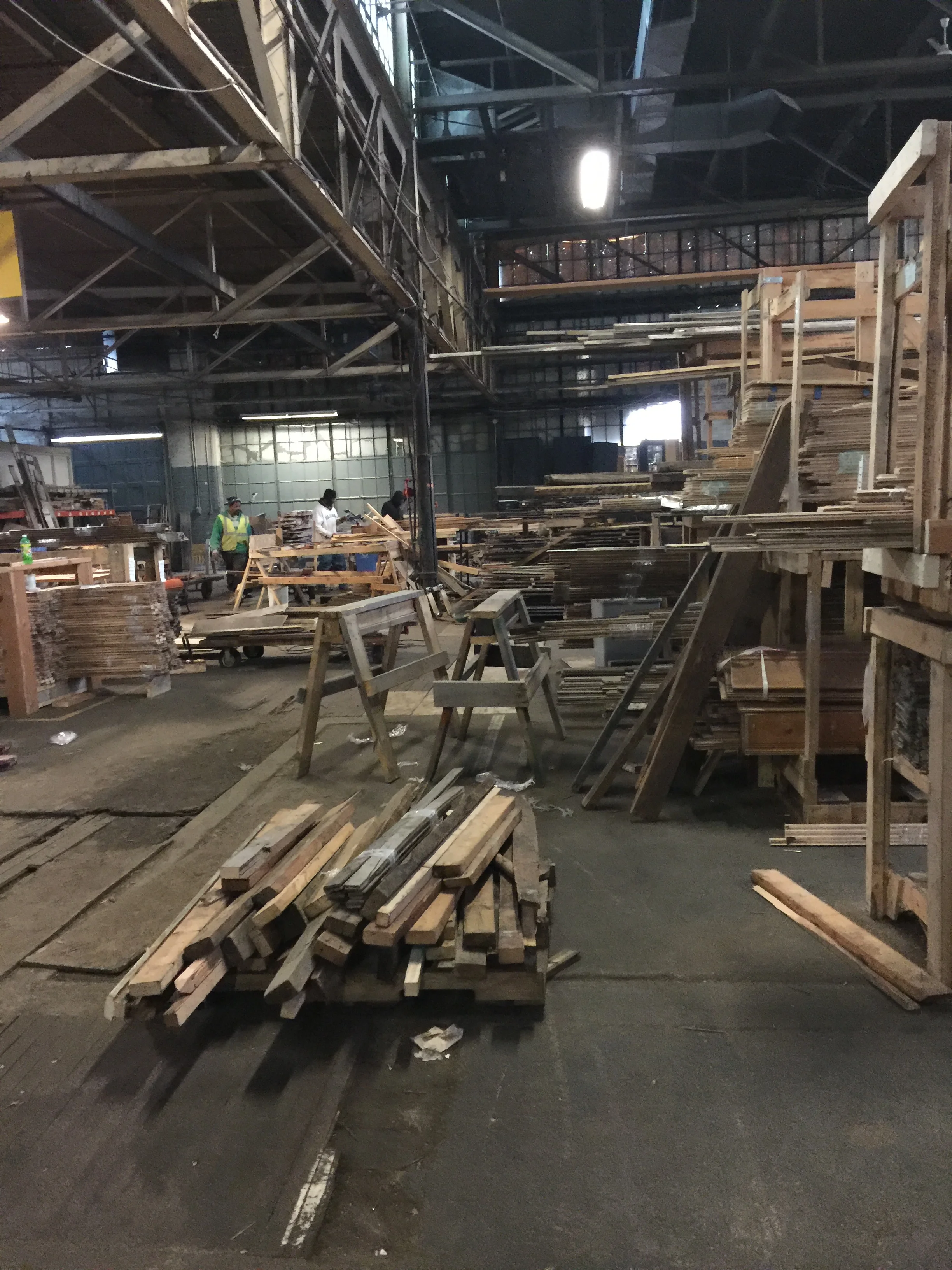 We acquired the wood from Reclaim Detroit. Reclaim Detroit obtains materials from deconstruction projects within the city, along with renovations and other sources, to be re-used again. The wood we picked was maple, originally from the Detroit Athletic Club's Squash Courts. We picked it because of it's history, it's great quality, and also because the tongue & groove was still in great shape. We were excited to be able to get affordable materials, be able to purchase used instead of new, and to support another local business.